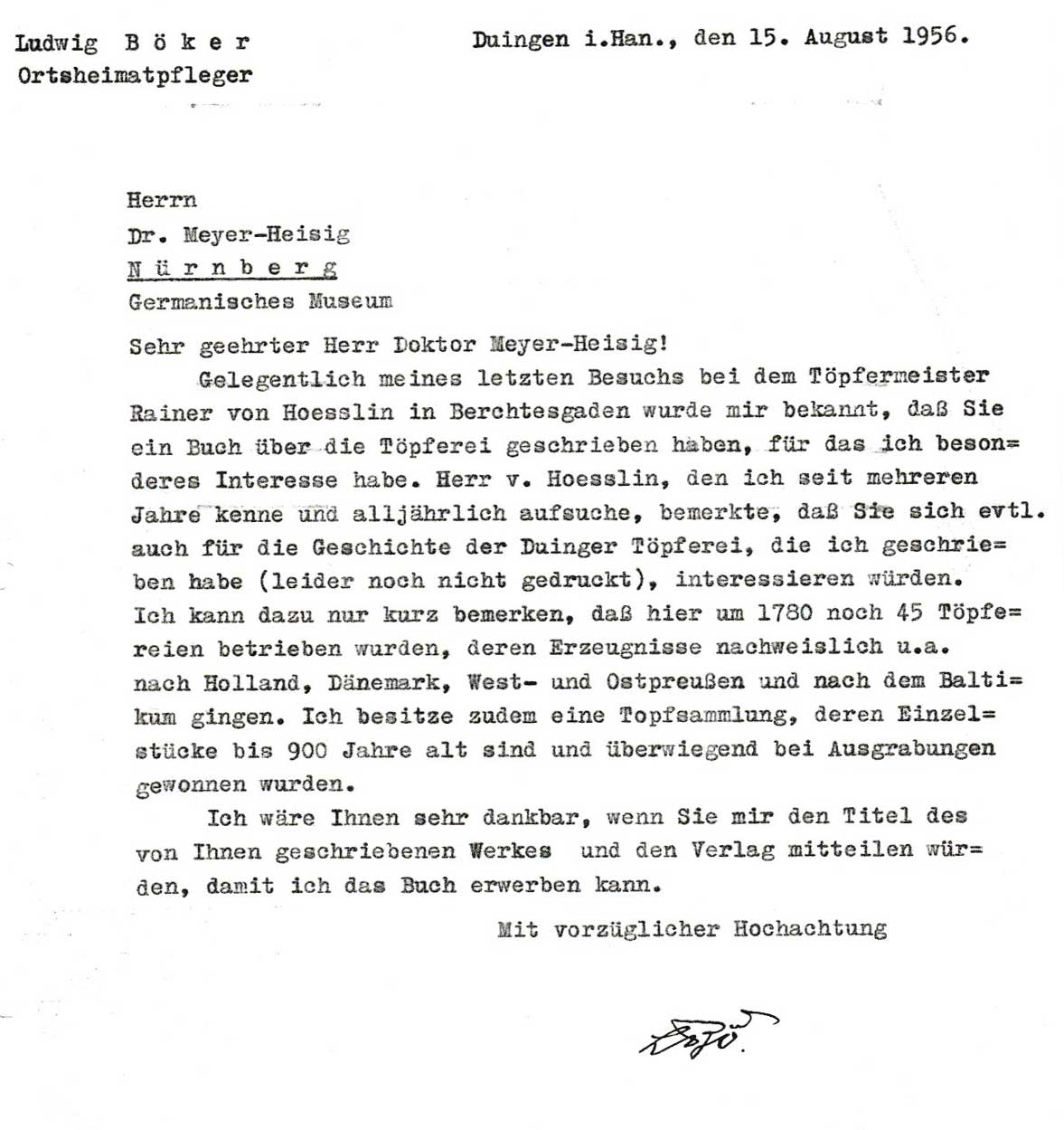 "Brief von Ludwig Böker an Dr. Meyer-Heisig" 15.08.1956